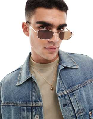 ASOS DESIGN square metal sunglasses with brown lenses in gold
