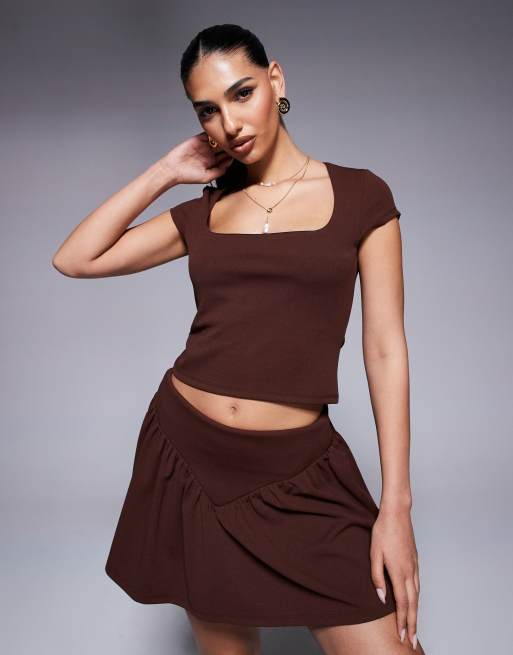 ASOS DESIGN square neck cap sleeve top in chocolate - part of a set