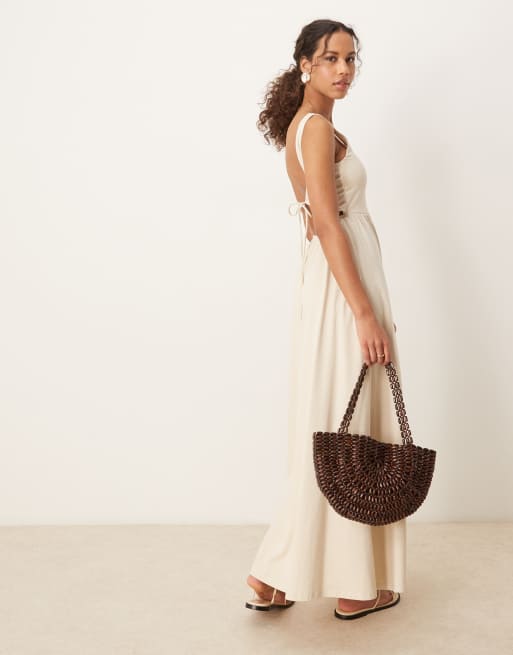 ASOS DESIGN square neck micro bust maxi dress in neutral