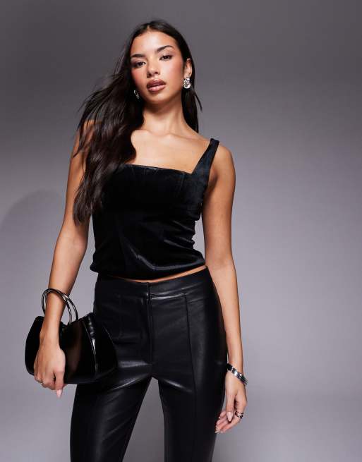 ASOS DESIGN square neck paneled velvet corset top in black