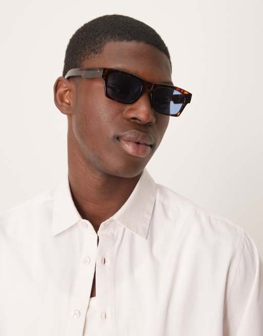 ASOS DESIGN square sunglasses with blue lenses and tortoiseshell frames
