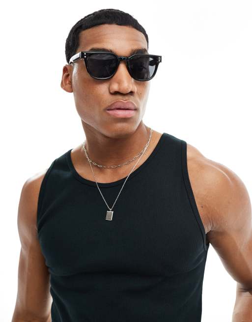 ASOS DESIGN square sunglasses with silver pipettes in black