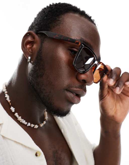ASOS DESIGN square sunglasses with slim frames with smoke lens in dark tortoiseshell