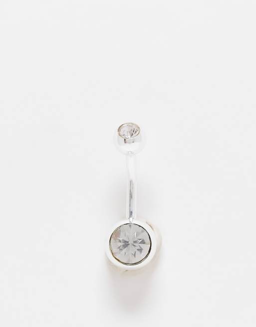 ASOS DESIGN stainless steel belly bar with crystals