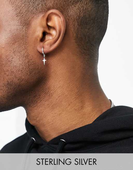 ASOS DESIGN sterling silver mini hoops with dropped cross