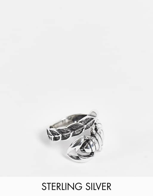 ASOS DESIGN sterling silver ring with wraparound scorpion in burnished silver