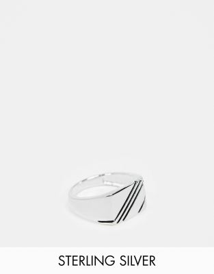 ASOS DESIGN sterling silver signet ring with contrast design in silver