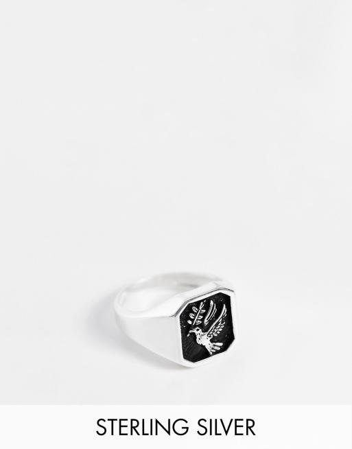 ASOS DESIGN sterling silver square signet ring with bird detail in silver tone