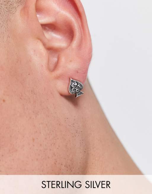 ASOS DESIGN sterling silver stud earrings with ace of spades design in burnished silver
