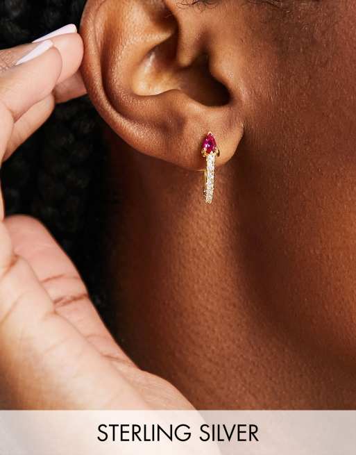 ASOS DESIGN sterling silver with gold plate hinge hoop earrings with teardrop pink crystal