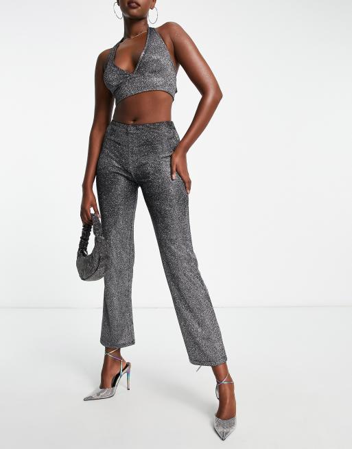 ASOS DESIGN straight leg pants in sparkle silver - part of a set