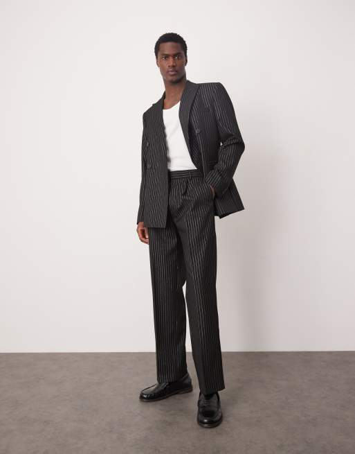 ASOS DESIGN straight leg suit pants in metallic black pinstripe