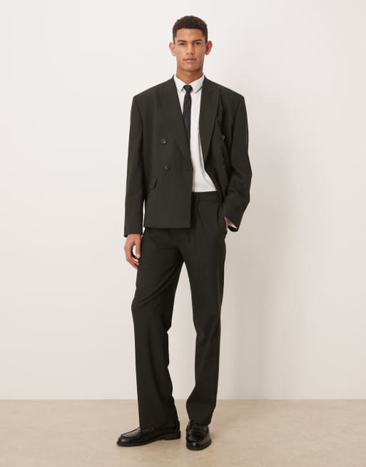 ASOS DESIGN straight suit pants in dark green pinstripe
