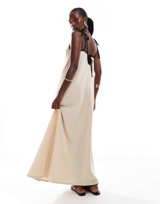 ASOS DESIGN strappy trapeze maxi dress in stone with contrast straps in black