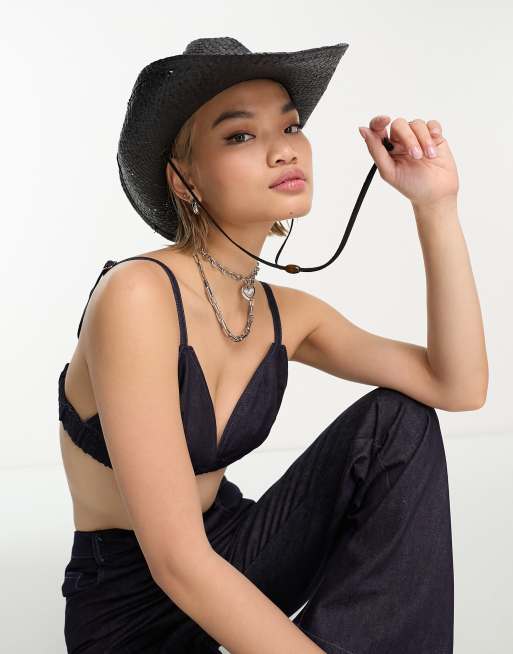 ASOS DESIGN straw cowboy hat with size adjuster in black
