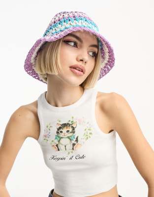 ASOS DESIGN straw crochet bucket hat with stripes in purple