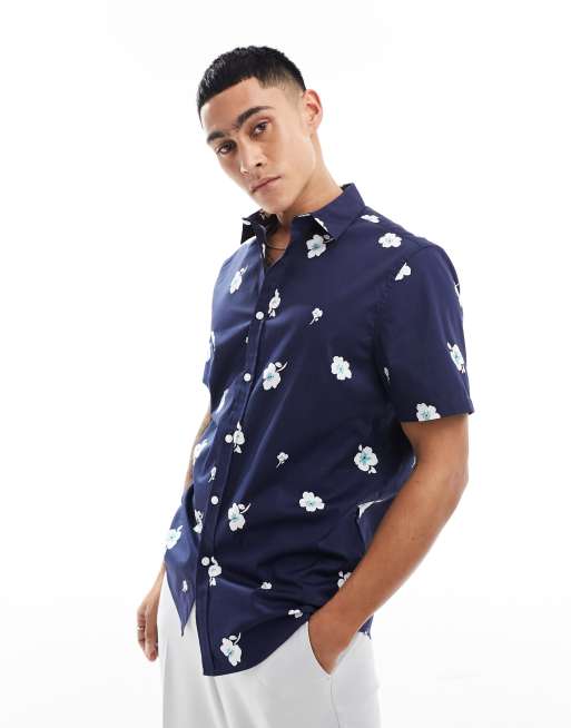 ASOS DESIGN stretch shirt in navy floral print