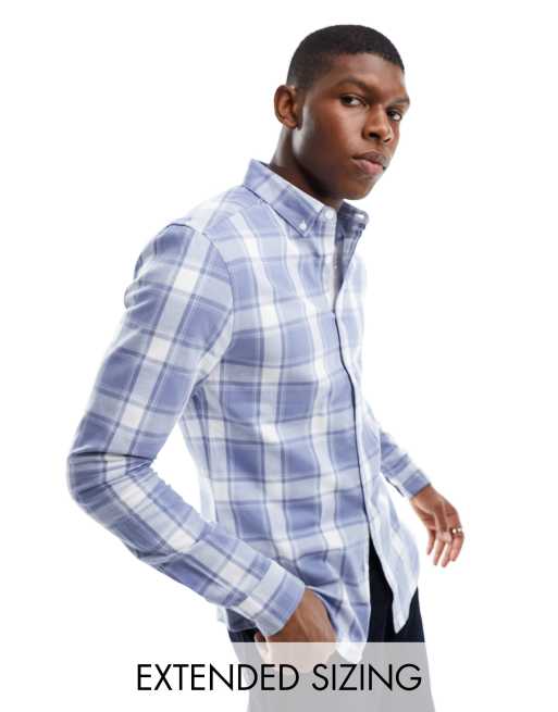 ASOS DESIGN stretch slim check shirt in blue