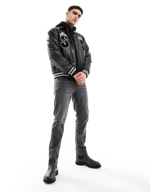 ASOS DESIGN stretch slim jeans with abrasions in washed black