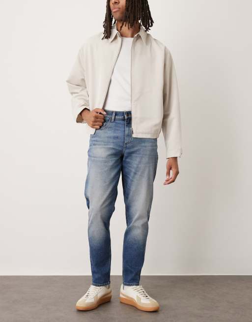 ASOS DESIGN stretch tapered jeans in dark wash blue