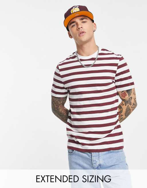 ASOS DESIGN stripe t-shirt in burgundy and white