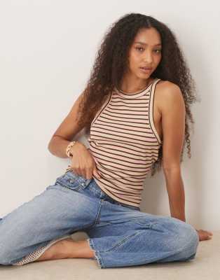 ASOS DESIGN striped racer tank top in pink and cream