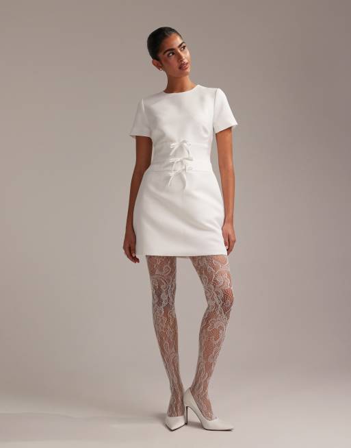 ASOS DESIGN structured satin mini dress with bow detail in ivory