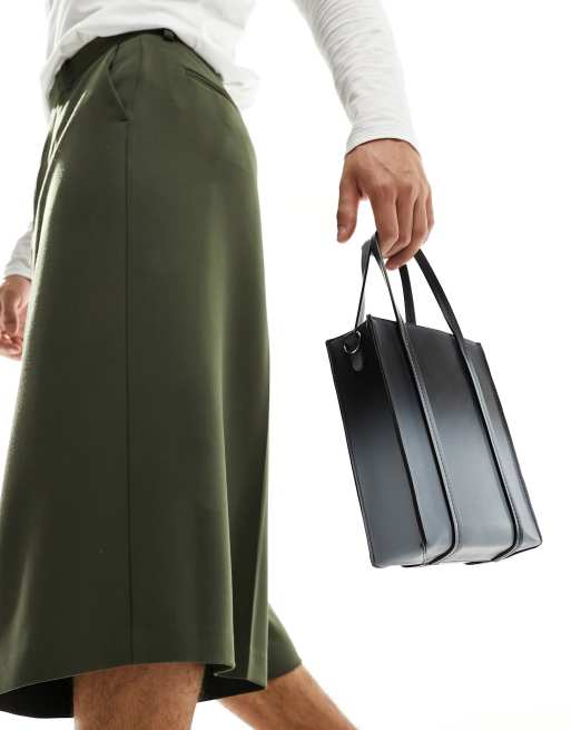 ASOS DESIGN structured tote bag with cross body strap in gray