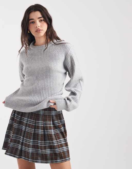 ASOS DESIGN stuffed neck trim rib detail sweater in gray