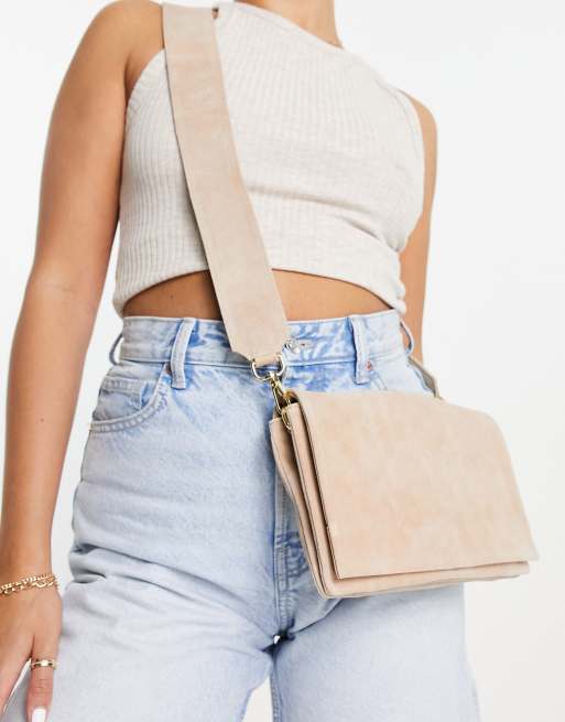 ASOS DESIGN suede crossbody bag with detachable strap in beige