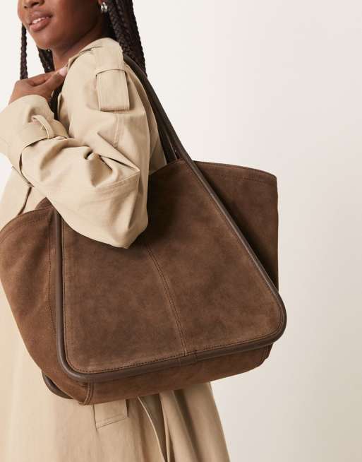 ASOS DESIGN suede winged tubular tote bag in brown