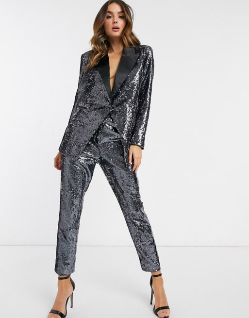 ASOS DESIGN suit in silver sequin