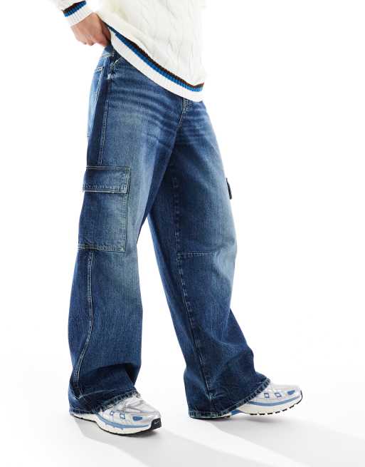ASOS DESIGN super baggy cargo jeans in dark wash blue