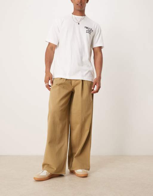 ASOS DESIGN super baggy pants with pleat detail in tan