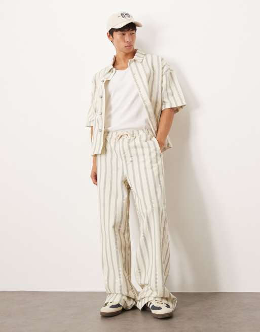ASOS DESIGN super baggy pull-on pants in cream with blue stripe - part of a set