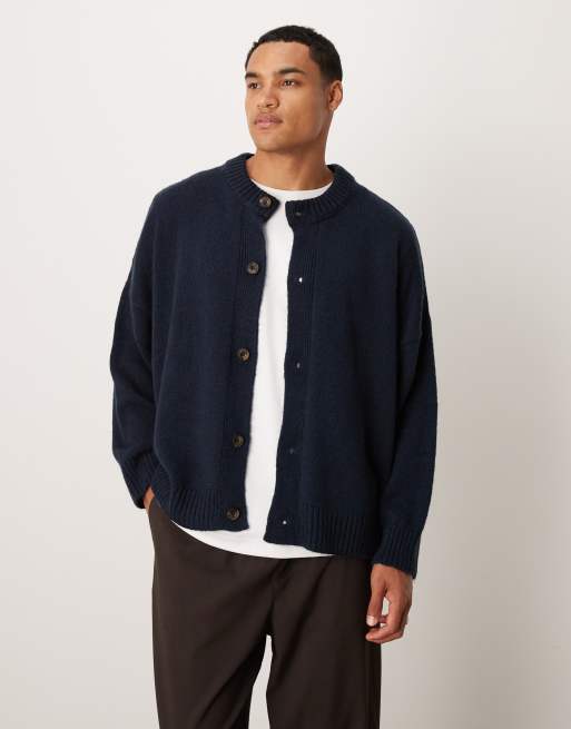 ASOS DESIGN super oversized boxy fit knit crew neck cardigan in navy