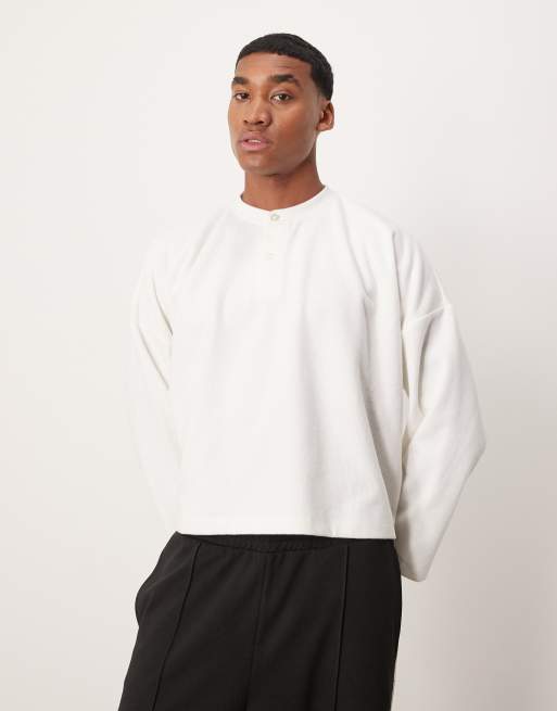 ASOS DESIGN super oversized cropped heavyweight ribbed henley sweater in cream