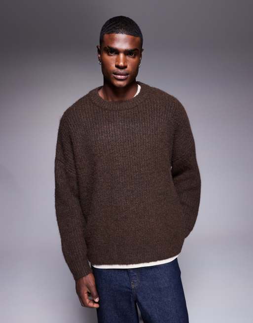 ASOS DESIGN super oversized knit crew neck sweater in brown