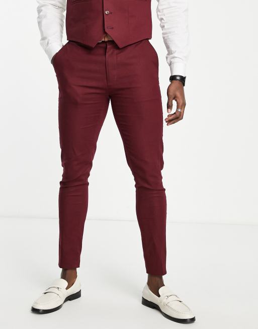 ASOS DESIGN super skinny linen mix suit pants in burgundy