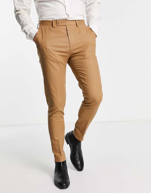 ASOS DESIGN super skinny linen mix suit pants in tobacco