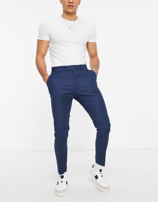 ASOS DESIGN super skinny smart pants in navy linen mix
