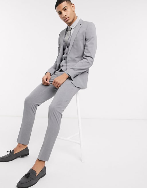 ASOS DESIGN super skinny suit in four way stretch in mid gray