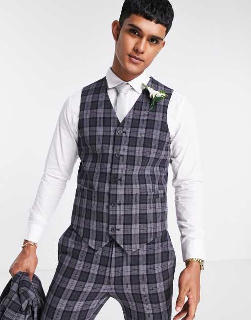 ASOS DESIGN super skinny suit vest in oxford check in charcoal