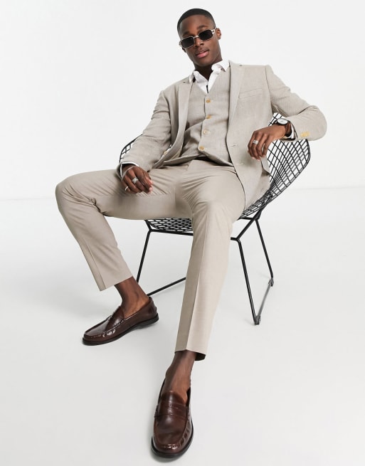 ASOS DESIGN super skinny wool mix suit in beige tweed
