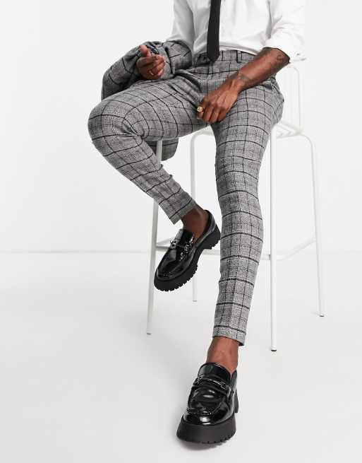 ASOS DESIGN super skinny wool mix suit pants in gray and white highlight plaid