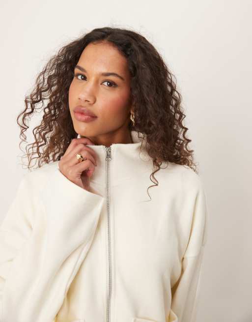 ASOS DESIGN super soft boxy funnel neck zip through cardigan in white