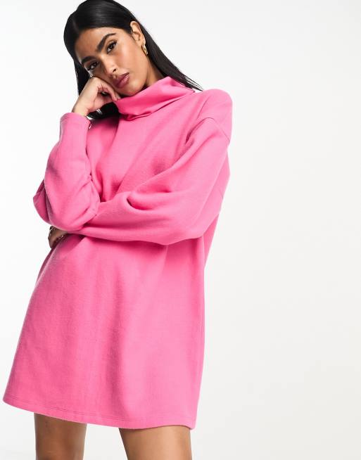 ASOS DESIGN super soft volume sleeve turtle neck mini sweater dress in light pink