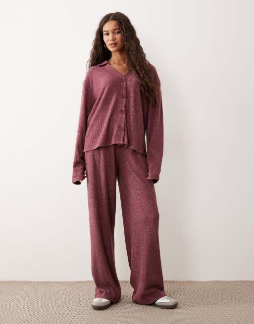 ASOS DESIGN supersoft brushed rib set in burgundy