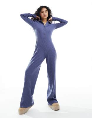 ASOS DESIGN supersoft button through ribbed jumpsuit in blue