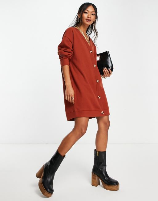 ASOS DESIGN supersoft button up cardigan mini dress in rust